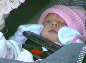 I'm in my car seat and ready to head home! (The hat is now pink--not so bad, but I still can't find my hands!) |